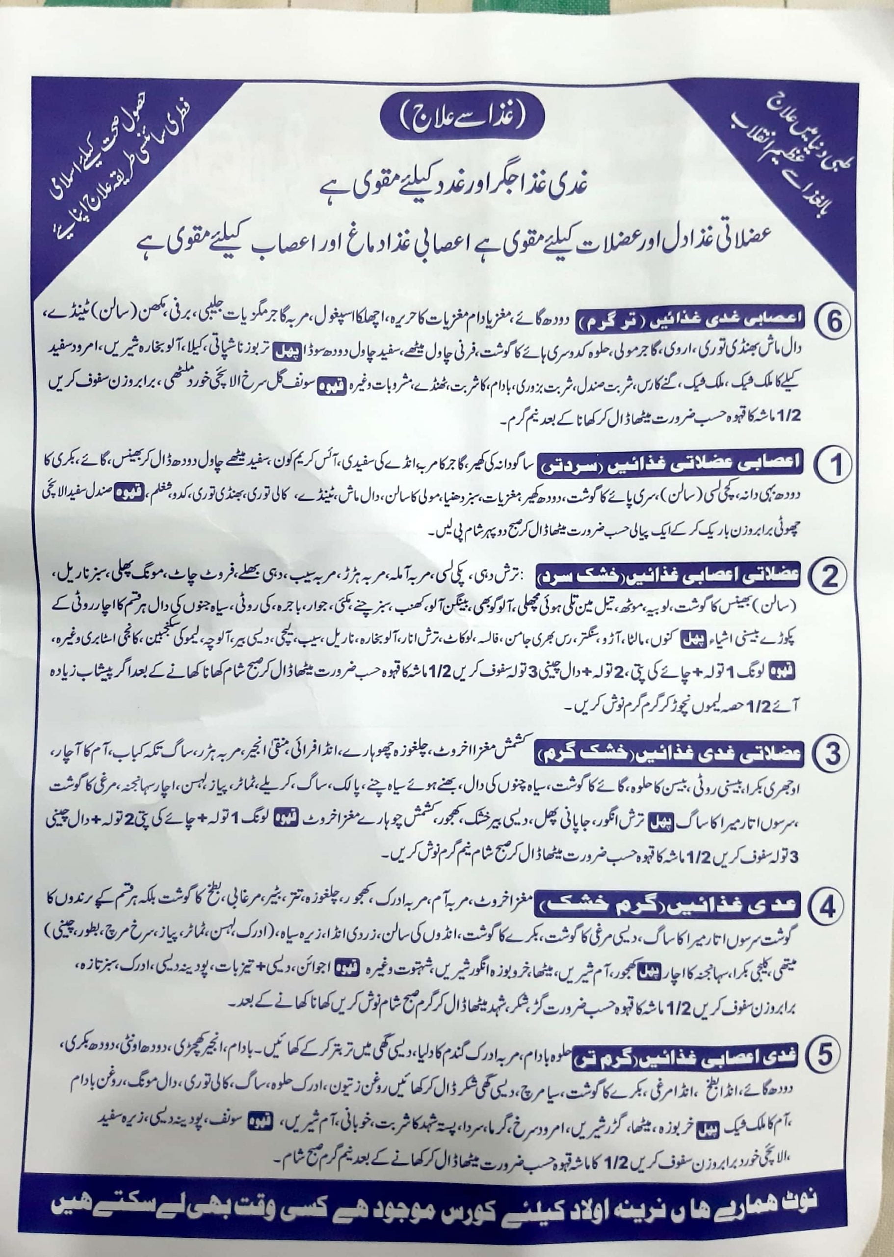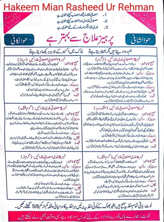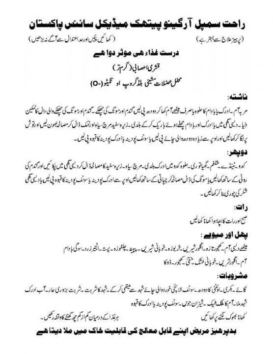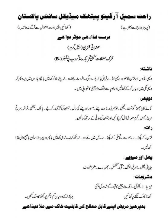 Toggleعلاج بالغذا قانون مفرد اعضاء چارٹ