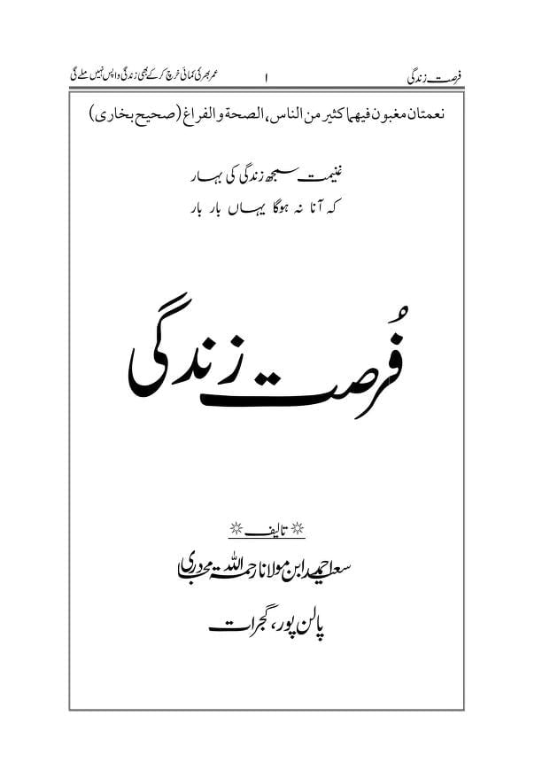 لہذا ہمیں اپنے اوقات کو ضائع اور بے کار نہیں کرنا چا ہے ، اس سے دنیا اور آخرت کے فوائد حاصل کرنے چاہئے ، اس کو اچھی طرح سمجھانے کے کئے وزیر مولوی مفتی سعید احمد صاحب مبادری سلمہ نے بہترین مضامین جمع فرمائے ہیں، احقر نے ان کو پڑھا اور بہت ہی مفید اور مؤثر پایا۔