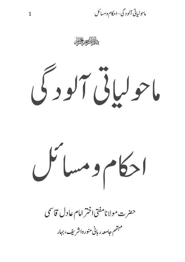 ماحولیاتی آلودگی احکام و مسائل Leave a Comment / Jurisprudential issues || فقہی مسائل, Latest || تازہ ترین / By eislamicbook Read OnlineDownload (1MB)Link 1 Link 2