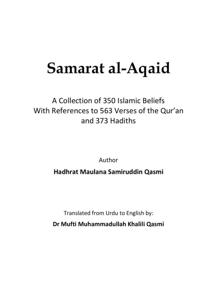 Samarat al-Aqaid is a recent work by Maulana Samiruddin, which focuses on the basic tenets of Islam, which were compiled in positive and simple manner under 44 headings. He has successfully tried to establish these beliefs from the verses of the Qur’an and the hadiths of the Prophet (peace and blessings of Allah be upon him). This book mentions the beliefs of Ahil al-Sunnah wa al-Jama’ah along with refuting the beliefs of the deviant sects and all the discussions have been substantiated by suitable evidences from the Qur’an and Hadith.