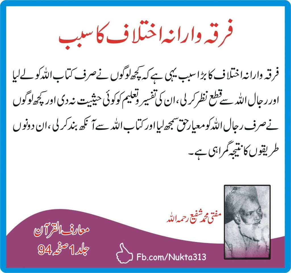 مسلکی جھگڑوں اور اختلاف و فرقہ واریت پر مفتی شفیع رحمہ اللہ کے اقوال