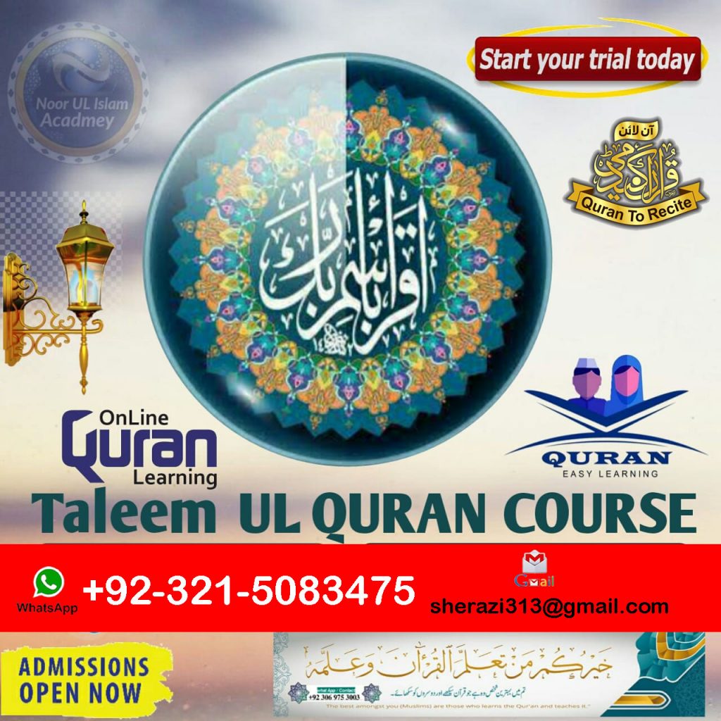 A perfect plan for you and your children Norani Qaida in just 120 days Holy Quran in just one year Join Today Whatsapp: +92-321-5083475 Email:   sherazi313@gmail.com Quran Courses Online: Quran Nazira for kids and Adults Basic (Qaida) Quran Reading Learn Quran with Tajweed Memorization (Hifz) of the Quran Quran Translation and Tafseer We have male and female